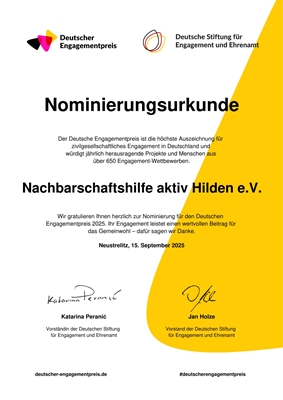 Der Anzeiger24 würdigte das ehrenamtliche Engagement mit einer Ehrenurkunde und einem Obstkorb: Es ist eine Würdigung für alle ehrenamtlichen Helferinnen und Helfer, die „leisen Alltagsheldinnen und -helden“ im Hintergrund, die unermüdlichen Anpackerinnen und Anpacker. Regelmäßig stellt der Anzeiger24 in einer Serie "Hilden – wir machen was draus" solches Ehrenamtliches Engagement von Vereinen und Mitmenschen vor – und als kleinen Bonus gibt es obendrein eine prall gefüllte Obstkiste von Breidohr’s Frischecenter.